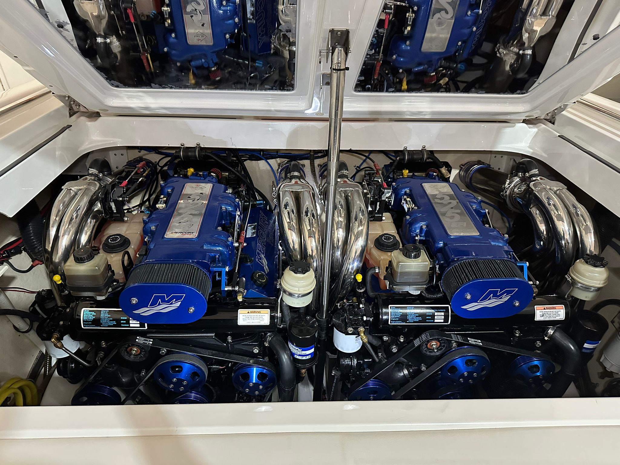Engines – 2 x Mercury Racing EFI 8.2l 525hp with Bravo One ITX stern drives (external gearbox vers)
